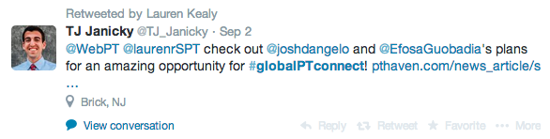 These ripples started in Guatemala and will continue there yet it cannot and must not stop there. International Connectivity is the name of the game. In honor of World Physical Therapy Day, it would be great if all PT’s everywhere took the time to reflect on where we have been and preflect on where we can go. What individual and collective steps can we start taking to achieve the strengthening and connecting of our profession? The internet has rendered communication more available. With different social media mediums now, the world really is becoming flat. A Physical Therapist from Norway can now easily connect with a Physical Therapist from New York. We have created the #globalPTconnect as a home for some of these conversations and connections. Beyond the internet, the obvious other options are participating in international travelling and service projects, as well as global education and teaching collaborations. Also consider going to WCPT in Singapore in May 2015 (link). I am aiming to be there